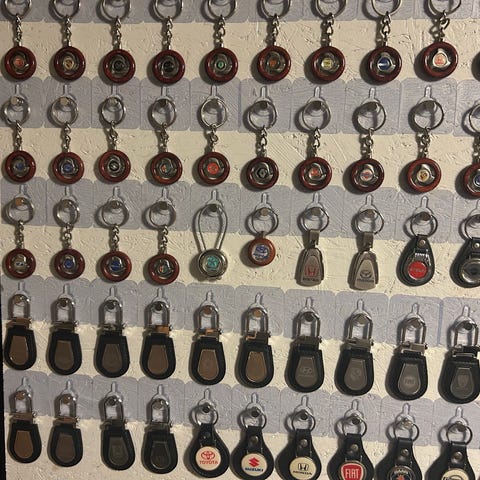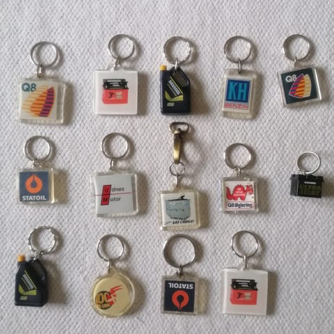 Bosch Service og BP nøgleringe i kvadratisk plastdesign. Nøgleringene har metalring til fastgørelse af nøgler og plastvedhæng med tryk af henholdsvis Bosch Service Car Service-logo og BP energi a s-logo. Velegnet til brug som almindelige nøgleringe eller som samlerobjekter for dem, der interesserer sig for bil- og energibranchen.