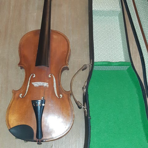 Har en violin og. Den. Skal fixet strenge virker alt virker Se på billde hva drr galt. Altid kom med et bud