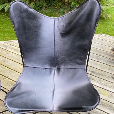 To stk. flagermus stole i brunt læder med sort metal stel. 500kr. pr. stk.