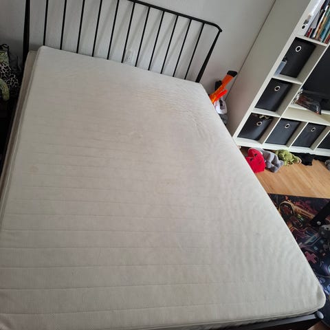 BYD GERNE, DA JEG SKAL FLYTTE. IKEA Sultan Silsand seng med memoryskum topmadras. Sengen består af en polstret boxmadras i lys farve med metalben, samt en IKEA Tafhjord topmadras, som former sig efter kroppen. Sengen og madras måler 140x200. Sengen står i god stand, mens at topmadrassens betræk har flere plamager (se billede). Derfor får man topmadrassen med gratis. Man kan hente sengen i Åbyhøj inden d. 1/3.