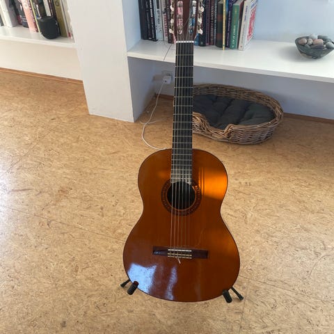 Den er let, overskuelig i størrelsen og behagelig at spille på. Perfekt som første “rigtige” guitar til et barn eller en nybegynder – eller som en lille sofa-/sommerhusguitar.