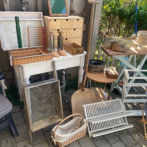 - Gl. købmandsvægt m. lodder, kr. 250,-