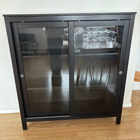 Det populære Ikea MOSSJØN / MOSSJON skab med riflede glaslåger.