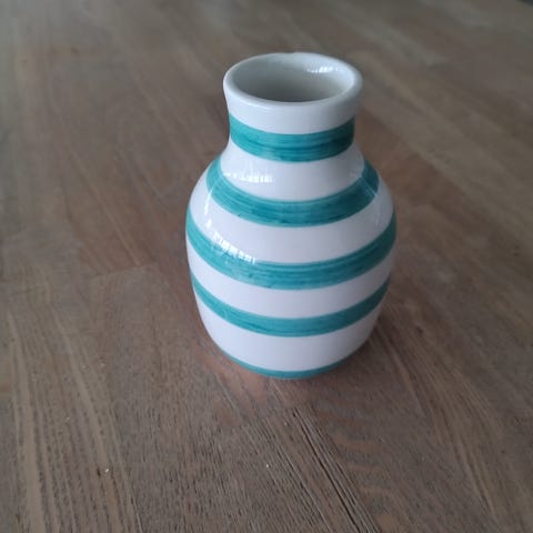Lille, ældre vase fra Kähler i karrygul og brun. Overfladen er struktureret og glaseret. Foden er mere ru. Fin stand - jeg kan ikke finde nogen fejl. Totallængde 10 cm. "Fod" ca. 3 cm. Diameter på åbning ca. 4,5 cm. med struktureret overflade