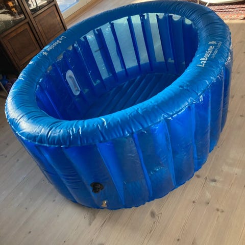 Vi har købt karret brugt, og den tidligere sælger skrev at bunden ikke længere holdt luft. Vi forsøgte ikke at puste bunden op, og jeg tænkte ikke over at det manglede. Resten af karret fungerer upåklageligt.