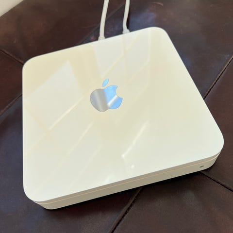 Klassisk Apple WiFi-router med indbygget 1TB harddisk til Time Machine backup.