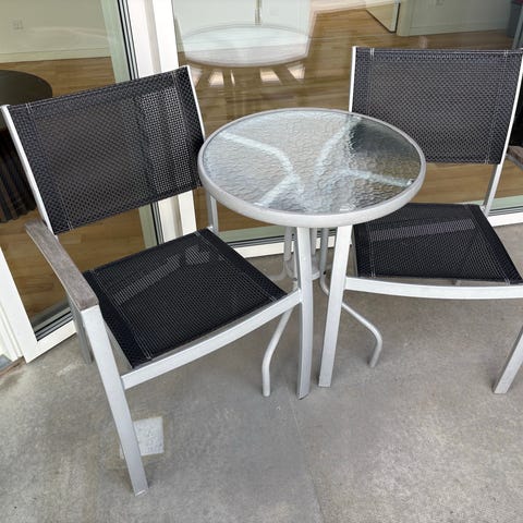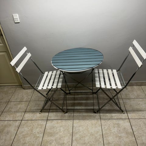 Altansæt / Cafésæt med 2 stole og rundt glasbord