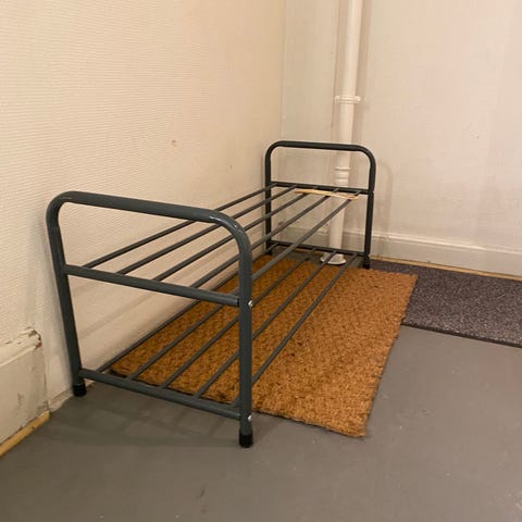 Wooden shoe rack. 4 rows of shoes. In good condition.