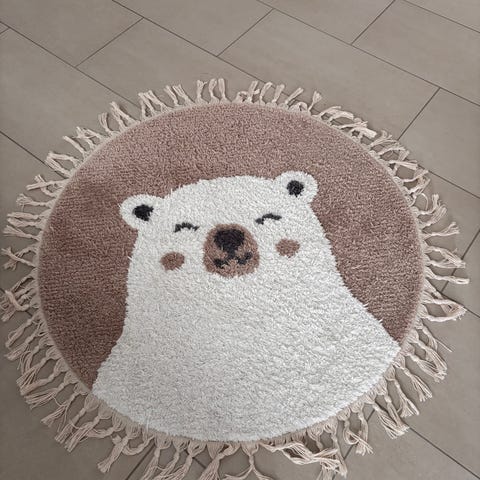 Rigtig fint tæppe i 100% uld formet som en sky. Bagsiden har gummi, så det ligger fast.