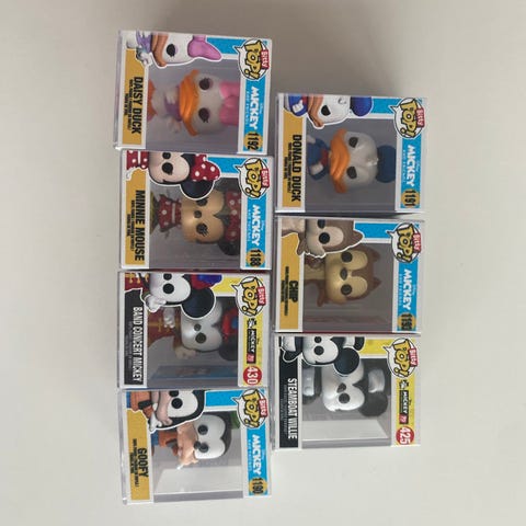 Funko Pop! Disney Mickey and Friends figur af Minnie Mouse, nr. 1188. Samlefigur i vinyl med klassisk Minnie Mouse-design i rød kjole med hvide prikker og rød sløjfe. Leveres i original vinduesæske med serien Mickey and Friends vist på bagsiden. Egnet som samlerobjekt eller dekoration.