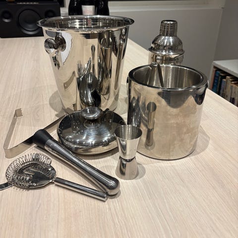 Leopold Vienna Bar Set Start cocktailsæt i rustfrit stål med 3 dele. Sættet indeholder en cocktailshaker, en målebæger/jigger og en cocktailsi/strainer. Alle dele er udført i metal med blank overflade. Velegnet til tilberedning og servering af cocktails og andre blandede drikke. Leveres i æske.
