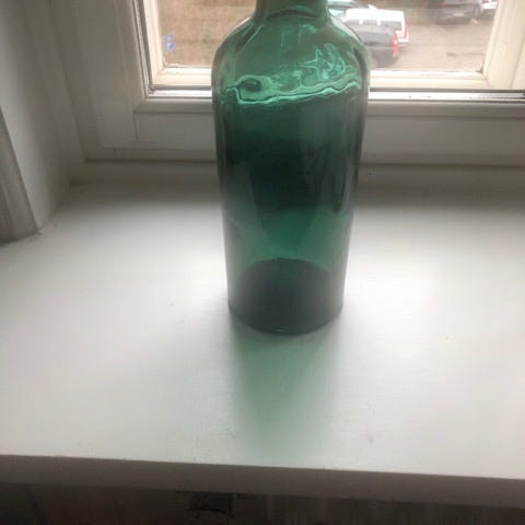 Super charmerende gammel svensk “Spille-flaske/Musik-Flaske” i lys-grøn mundblæst flaske - Klukflaske mm