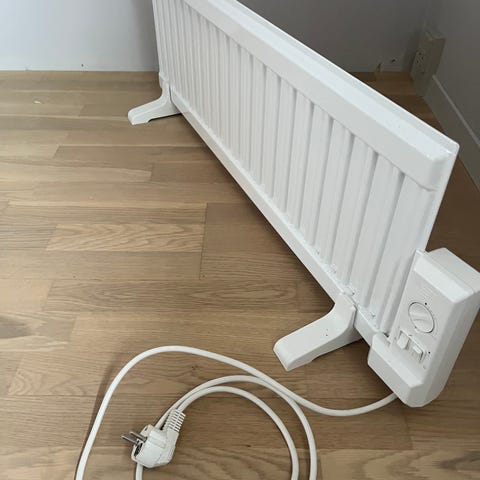 Fritstående olieradiator med ben. Termostatstyret med overophedningssikring. Indikatorlys for tænd/sluk. Aldrig brugt, i original indpakning.