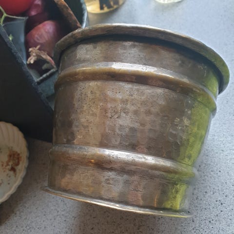 Kop i messing.H 7 cm, Dia 5,5 cm.Flot og velholdt, gå til varen, for flere billeder.(A1).