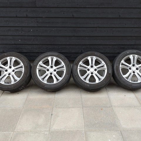 Har disse 16” alufælge til en Peugeot 208 16” med sommerdæk på der er ca 3-4mm dæk tilbage.