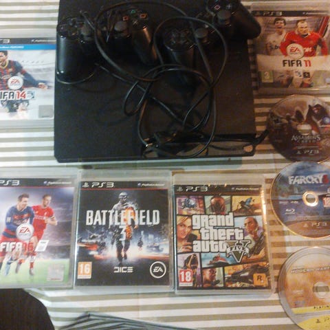 PS3 med 2 kontrolle + ladekabel
