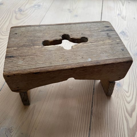 Lille skammel af fyrretræ. Pæn og næsten ubrugt.