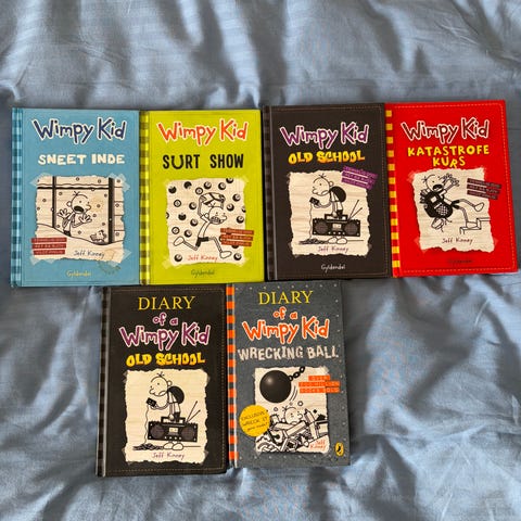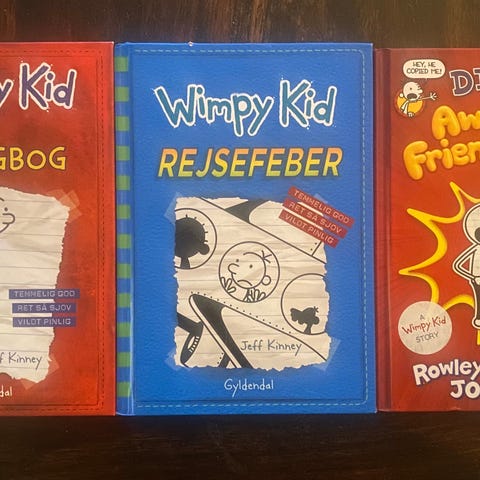 4 engelsksprogede bøger i Wimpy Kid serien. Tre hardback og en hæftet. Sælges samlet. Samlet pris.