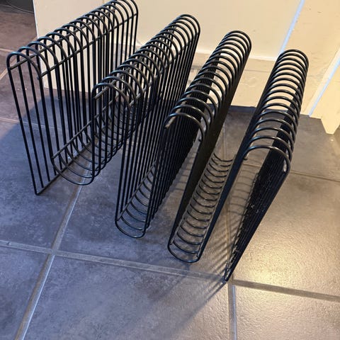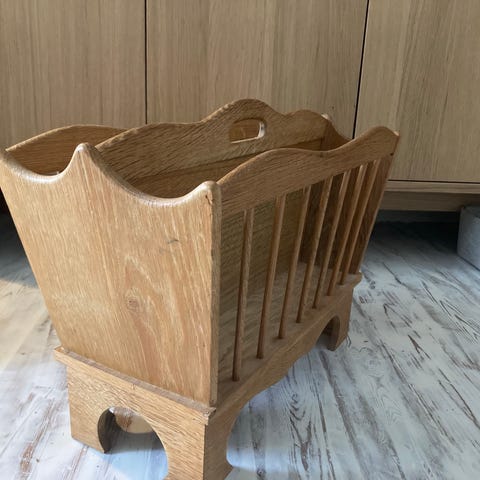 Tripp Trapp avisholder i træ med gittermønster. Egnet til opbevaring af blade, magasiner eller aviser i stue, entré eller kontor.