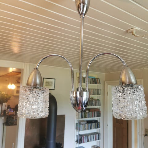Anden loftslampe, Ovi claccic, Flot enkel loftslampe - str. 67x46 cm i hvidt glas - halogen pære - kan tilkobles lysdæmper