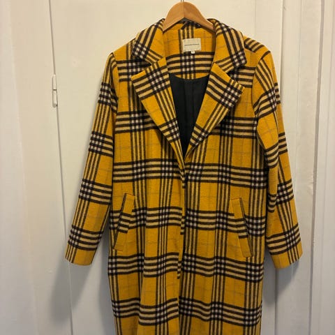 Flare Collection frakke til damer i str. L. Lang frakke i brun farve med hætte med ægte pelskrave..Velegnet som yderjakke i koldt vejr.