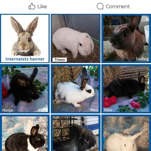 Vi har andre kaniner som ikke altid når at komme på salgs-portaler, så besøg venligst vores Facebook gruppe. Der står alle vores kaniner.... Hver kanin får sit eget mappe under "Albummer". Der kan du se om de er piger, drenge, fertile, neutraliseret omm
