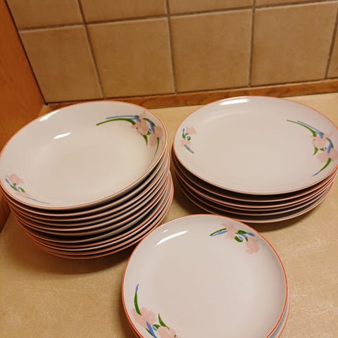 Middagstallerkener blå, brun og hvid