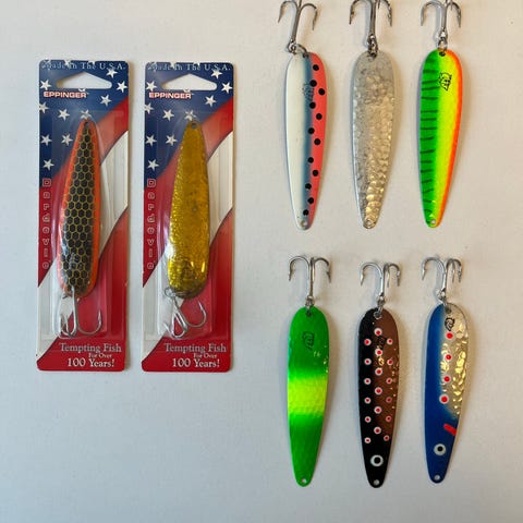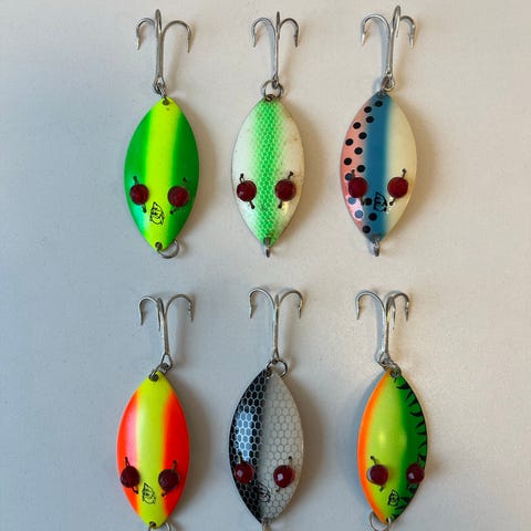 5 Evil Eye fra Red Eye Lures. 1 brugt og 4 ubrugte.
