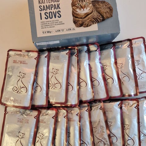 Sælges da jeg har skiftet vådfodermærke til mine katte så de får ikke spist det her