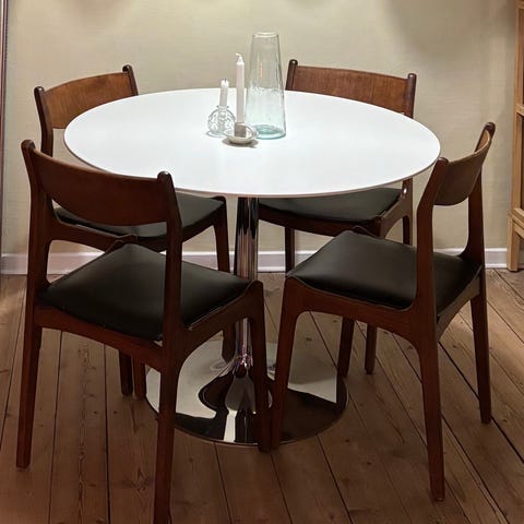 2 Farstrup spisebordsstole i teak i fin stand og er uden huller el lign. De har lige fået olie.