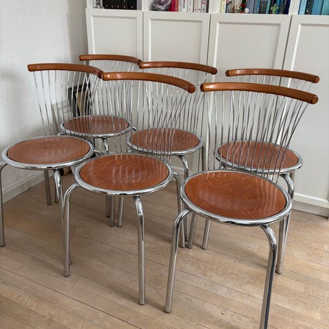 Stolene fremstår i fin stand med almindeligt, let brugsspor svarende til alder. Ingen løse lameller eller skader.