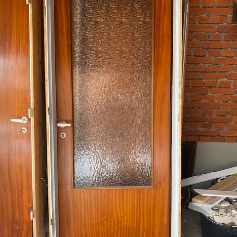 Den ene dør har monteret 2 udluftnings huller nederst ( brugt i badeværelse )