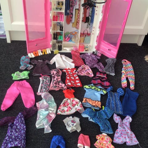 Barbie garderobeskab med dukketøj og tilbehør