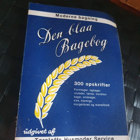 Den blaa bagebog, Tørsleffs, emne: mad og vin, Den blå Bagebog, med undertitlen Moderne bagning, indeholder ca. 300 opskrifter. Med den i hånden kan du forsøge dig med hjemmelavede kammerjunkere, konditorkager, fastelavnsboller, lækre tærter og alt det du skal bruge til børnefødselsdagen – lagkager, småkager, boller og dej til kagemanden. Her finder du også opskrifter til dejligt morgenbrød, wienerbrød og meget meget mere. Der er også en fin oversigt over både engelske og amerikanske mål oversat til vores måleenheder. Og de gamle danske mål- og vægtenheder ”oversat” til gram og decilitermål.