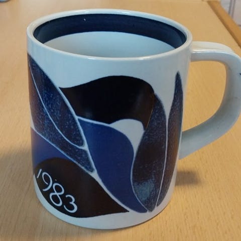 Fint Kgl. Årskrus fra 1982 i stor model med ren sølvplade.