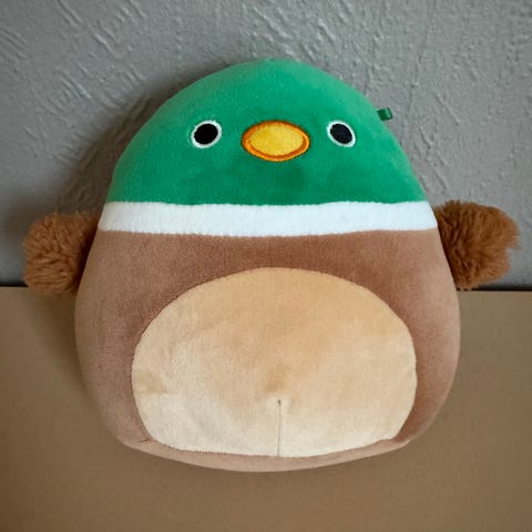 Squishmallows plysdyr sæt bestående af to figurer. Den ene er en rund lilla elefant med lyserøde detaljer, hvid moustache og frynset hår på toppen. Den anden er et mindre, brunt hjorte-inspireret plysdyr med lyse pletter og små gevirer. Begge plysdyr har den karakteristiske bløde og fyldige Squishmallows-form, som gør dem egnede som krammedyr, pyntegenstand på børneværelset eller som samlerfigurer for Squishmallows-interesserede.
