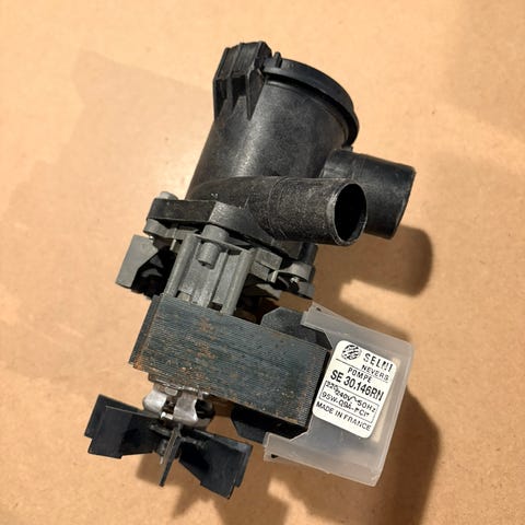 Afløbspumpe, drænpumpe, vaskemaskine pumpe, 230V pumpe, 100W pumpe, GRE Italy, Whirlpool reservedele, Bauknecht pumpe, Indesit pumpe, hvidevarer reservedele, vaskemaskine motor, pumpe 220V