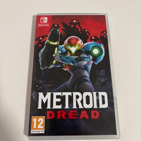 Nintendo Switch Metroid Dread spil. Fysisk spil til Nintendo Switch-konsol. Action-adventure spil i Metroid-serien med USK 12 aldersmærkning. Leveres i standard Nintendo Switch-spilboks.