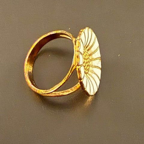 Georg Jensen ring til kvinde. Ringen har et rundt blomsterinspireret motiv på ringskinnen. Leveres i Georg Jensen smykkeæske som vist på billederne. Velegnet som fingerring til daglig brug eller ved særlige lejligheder.stemple 925