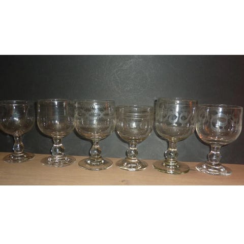 Franske mundblæste Glas fra ca. 1880 - 1890 - 6 stk. - højde ca. 14 cm. - fremstår i fin stand trods alder - sælges for kr. 250.- pr. stk. - prisen er fast. Sælges kun samlet for kr. 1.500.- Sendes for kr. 125.- med forsikring. Samme glas set til salg for kr. 500.- - kr. 600.- hos Fil de Fer i København.