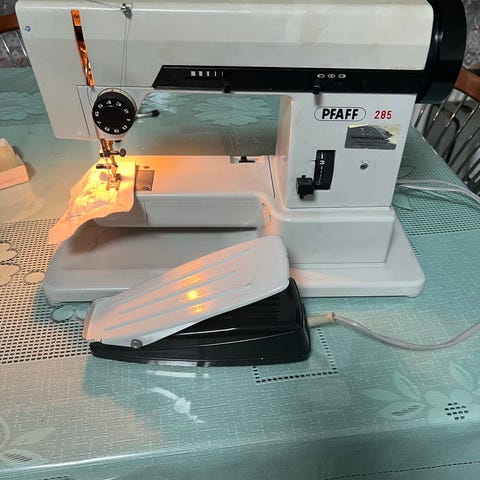 Jeg sælger min Pfaff 332 symaskine fordi den bare står og samler støv. Den er i super god stand og der er ikke en enkel ridse. Den kan ikke syg men hjulet bag på kan dreje rundt når man giver den gas. Den er nok bedst til pynt i stuen eller i en butik. Prisen for en brugt en i god stand ligge imellem 1500 og 3500 kr så jeg sætter den til 1750 kr syntes det er en god pris. Tager i mod bud skal bare have den solgt
