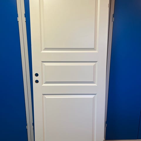 Fin hoveddør fra lejlighed. Blev udskiftet for en kraftiger dør. Halv pris hvis du kan hente dør og karm inden onsdag d. 18. februar 2026. Bemærk døren er tung som et ondt år!