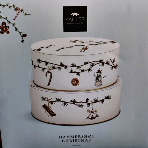 Kähler Hammershøi Christmas kagefad på fod hvid porcelæn
