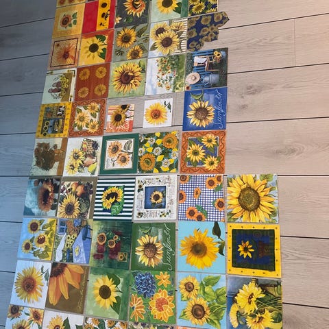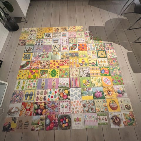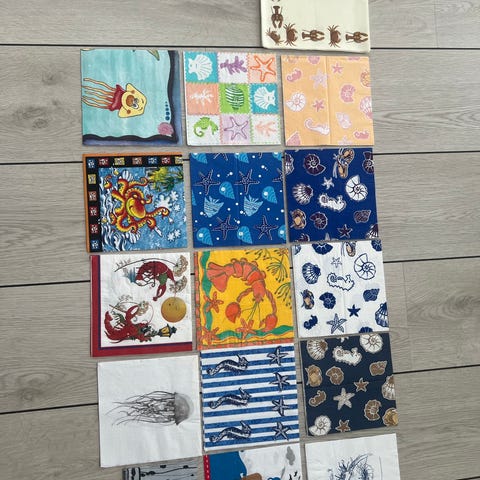 Blandet parti servietter i papir med forskellige farverige motiver, blandt andet feer, dyr, blomster og figurer. Servietterne er kvadratiske og egner sig til borddækning, hobbyprojekter og decoupage. Flere forskellige farver og designs i samme parti.