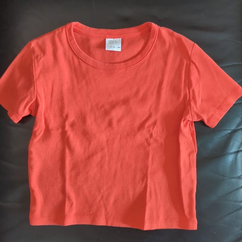 Kortærmet t- shirt. Mrk. Cost: bart. Sort med hvidt abstrakt mønster. 95% bomuld, 5% elastan. Tæt vævet stof. materiale. Str. S svarende til 152 cm/ ca. 12 år. Fra røg/ og dyrefrit hjem.