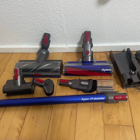 Dyson reservedele 2 ophæng med oplader, den ene er helt ny, ubrugt og 3 mundstykke. Kan sendes eller afhentes i Rødovre eller i indre by.