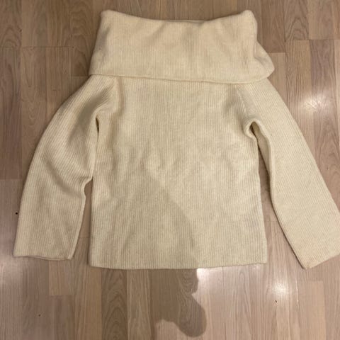 Denne trøje/strik har en V-udskæring og lange ærmer. Den er udført i et ribstrikket design, der giver en struktureret overflade. Trøjen har en afslappet pasform og en kortere længde, der slutter ved taljen.