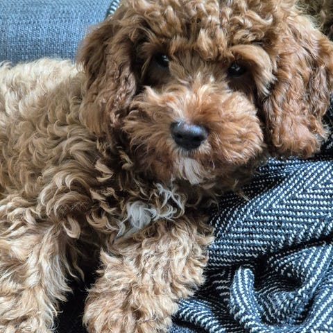 Far toy puddel 5 kg er Cavapoo (75 % puddel / 25 % Cavalier King Charles Spaniel).