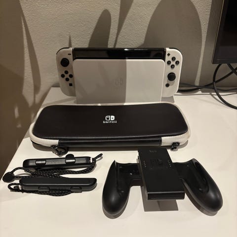 Nintendo Switch OLED konsol i hvid. Konsollen har OLED-skærm og aftagelige Joy-Con controllere i hvid. Velegnet til både håndholdt spil og tv-tilslutning via dock. Understøtter Nintendo Switch-spil og flerspillerfunktioner lokalt og online, afhængigt af spil og abonnement. Leveres med tilhørende dock og Joy-Con controllere som vist på billederne giv gerne et realistisk bud kun afprøvet et par gange 🙂