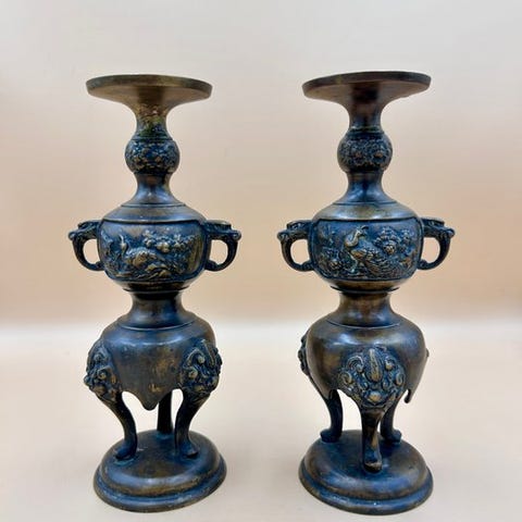 Exceptionel flot Buddhistisk symbolik ægte tinvase, Lysestage, alm. krone lys. *Samlerobjekt*